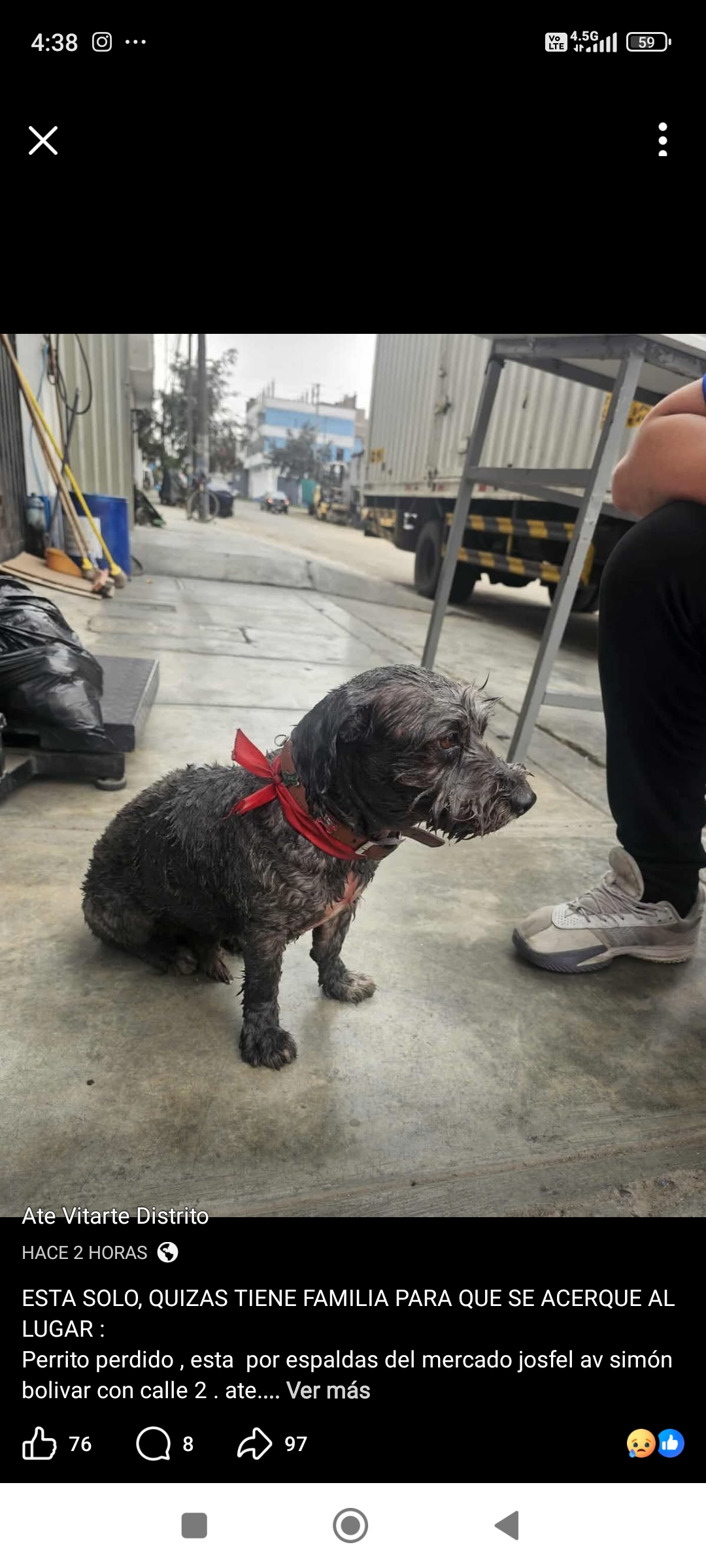 Perrito perdido , esta por espaldas del mercado josfel av simón bolivar con calle 2 . ate.