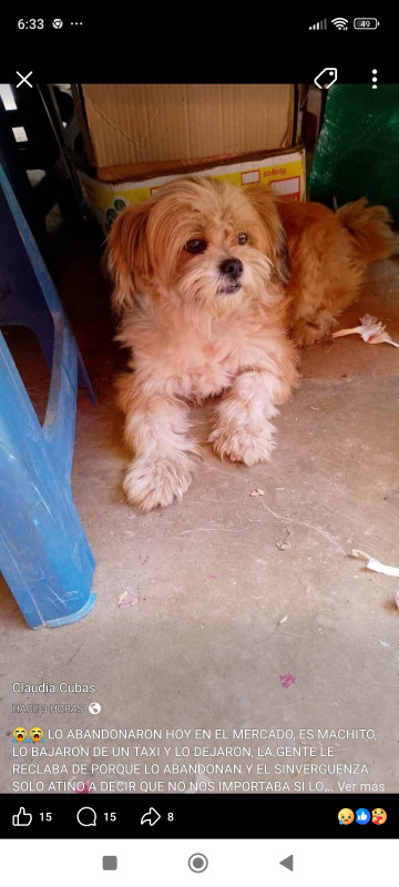 😭😭 LO ABANDONARON HOY EN EL MERCADO, ES MACHITO, LO BAJARON DE UN TAXI Y LO DEJARON, LA GENTE LE RECLABA DE PORQUE LO ABANDONAN Y EL SINVERGUENZA SOLO ATINO A DECIR QUE NO NOS IMPORTABA SI LO ABANDONABA 😭😭, POR FAVOR NECESITA UN HOGAR URGENTE, EL ESTA EN EL MERCADO, NADIE LO PUEDE LLEVAR ASU CASA, ES RAZA PEQUEÑA 😭😭😭😭